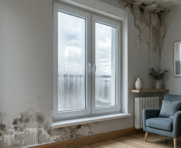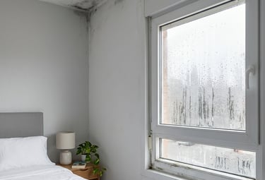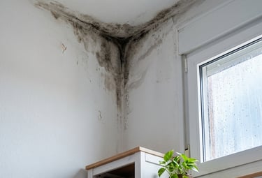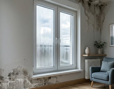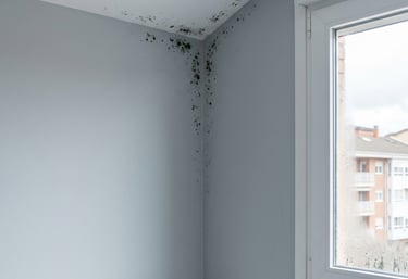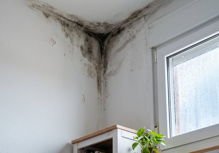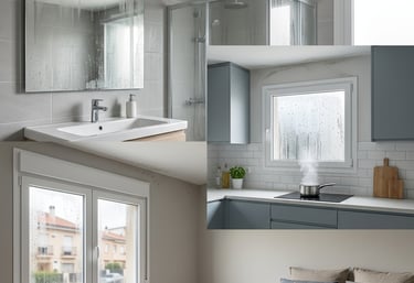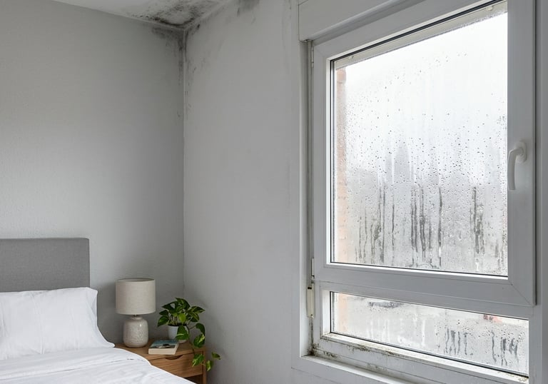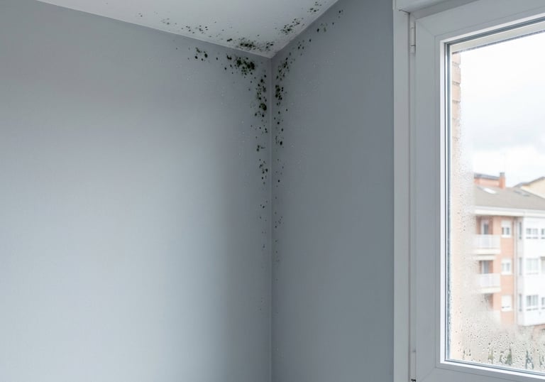 Se forma por exceso de vapor y falta de ventilación. Suele aparecer en ventanas, esquinas frías, techos o zonas con moho superficial.