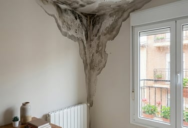 La filtración ocurre cuando el agua entra desde el exterior a través de fachadas, cubiertas, terrazas, grietas o juntas mal selladas. Puede aparecer en paredes, techos y zonas expuestas a la lluvia o al contacto directo con agua exterior.