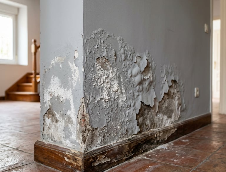 Sube desde el suelo y afecta sobre todo a la parte baja de los muros. Puede provocar salitre, pintura levantada y deterioro en rodapiés o yesos.